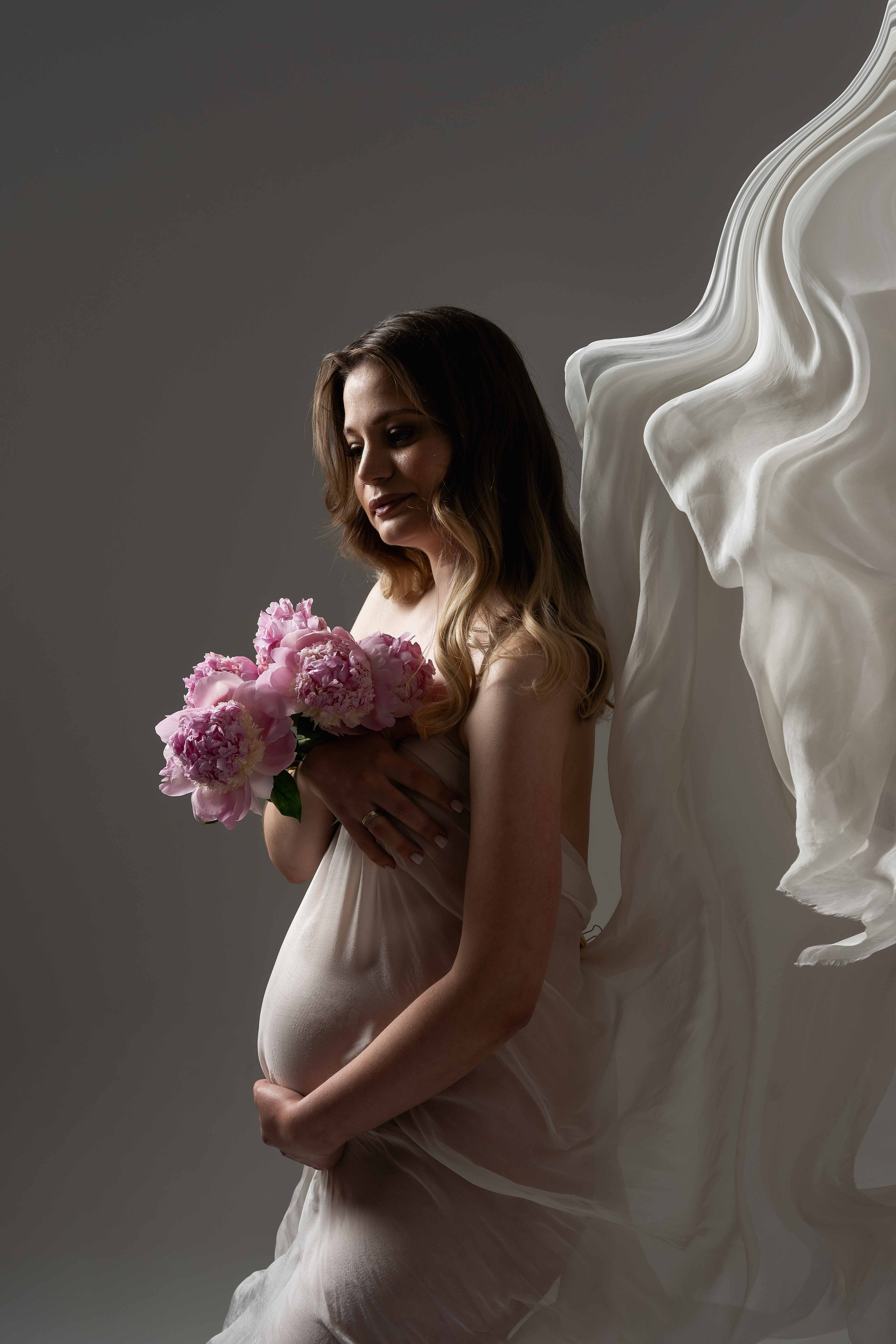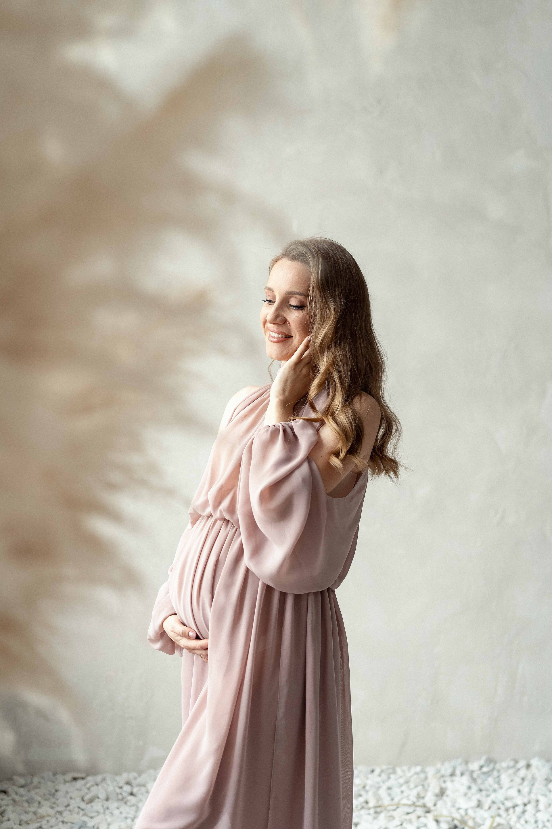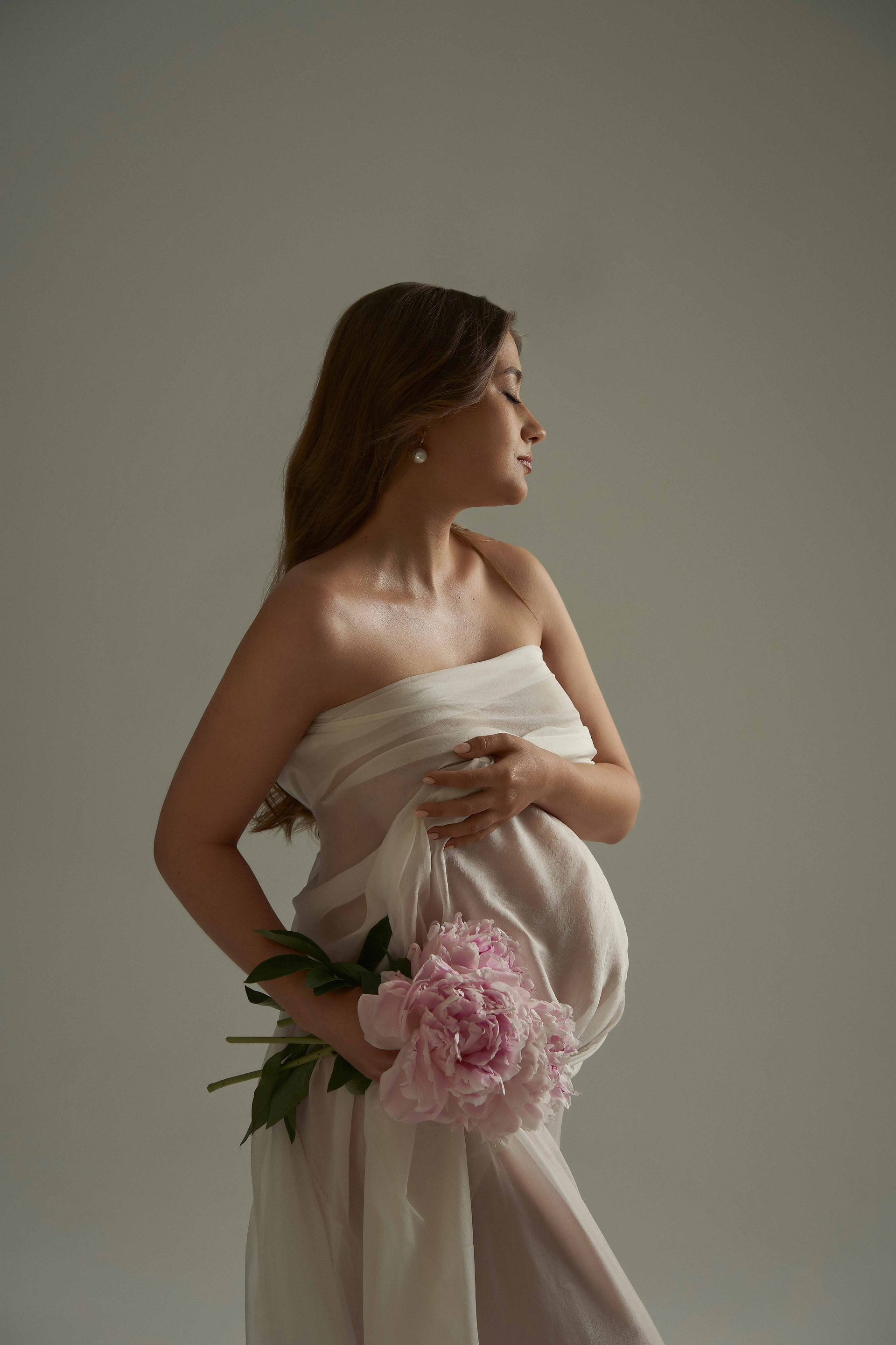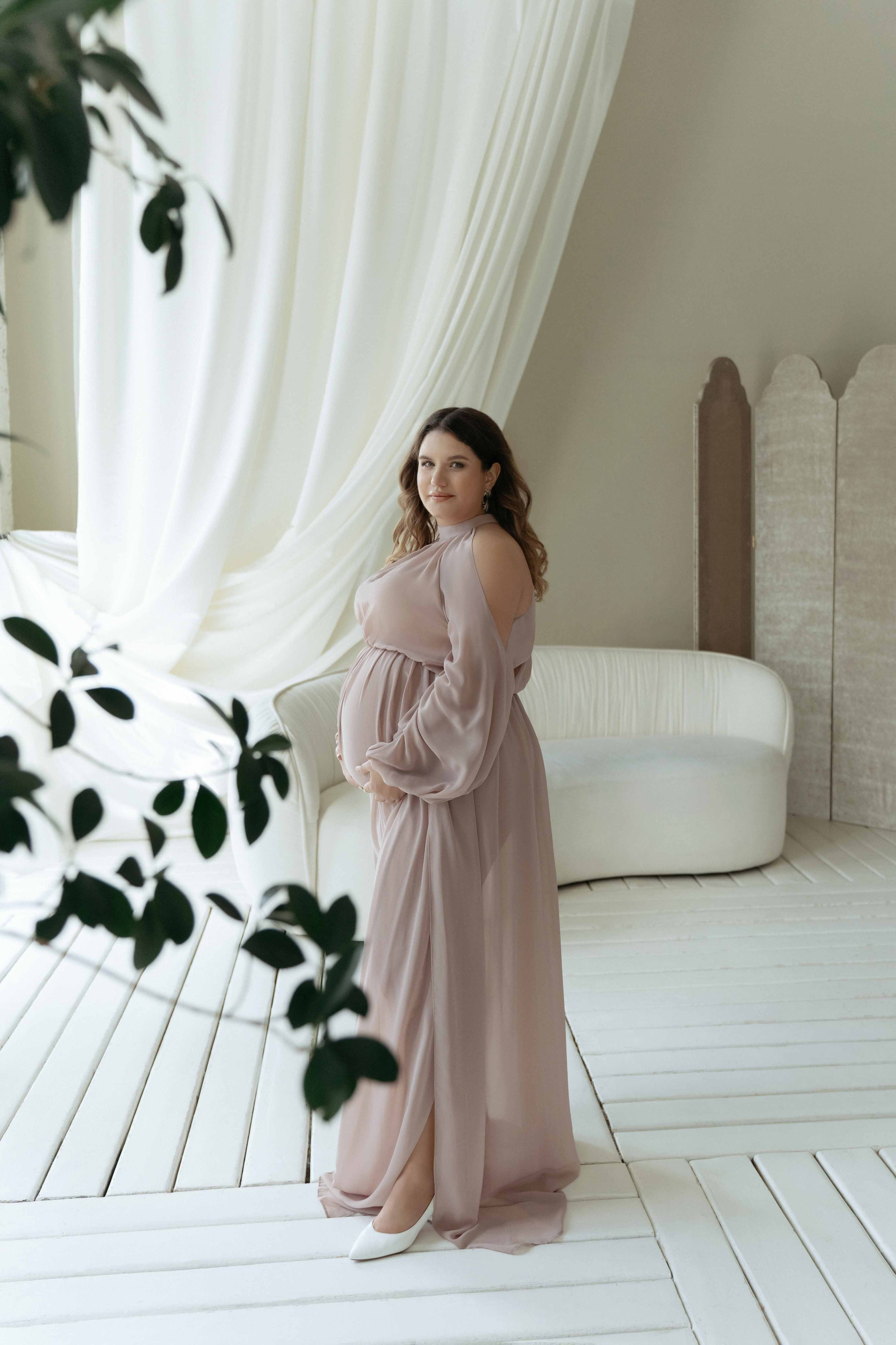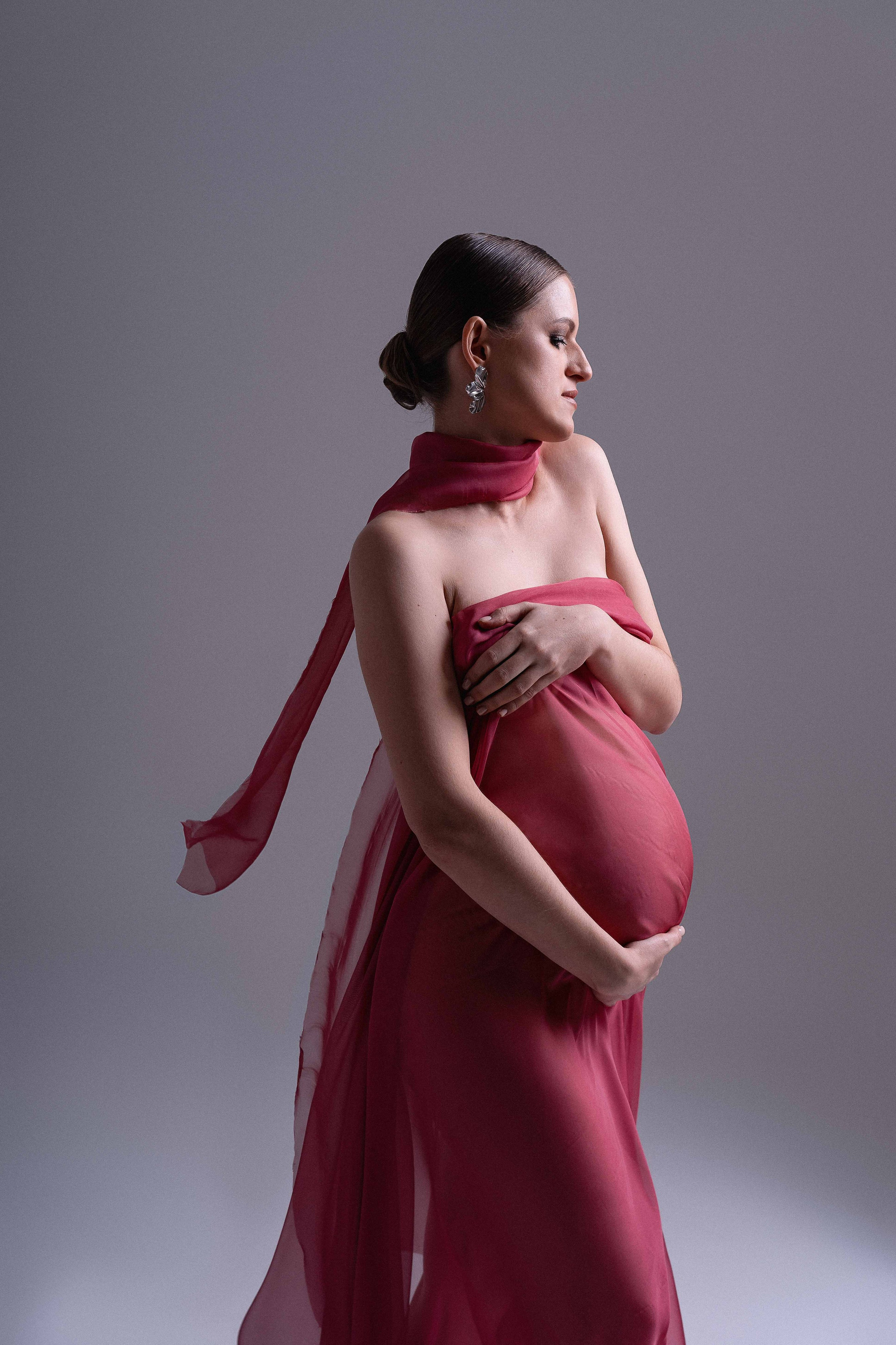 Розовая ткань мягко подчёркивает беременный животик, создавая нежный, чувственный визуал и атмосферу лёгкости в кадре. Этот образ всегда получается особенным и наполненным эмоциями.
