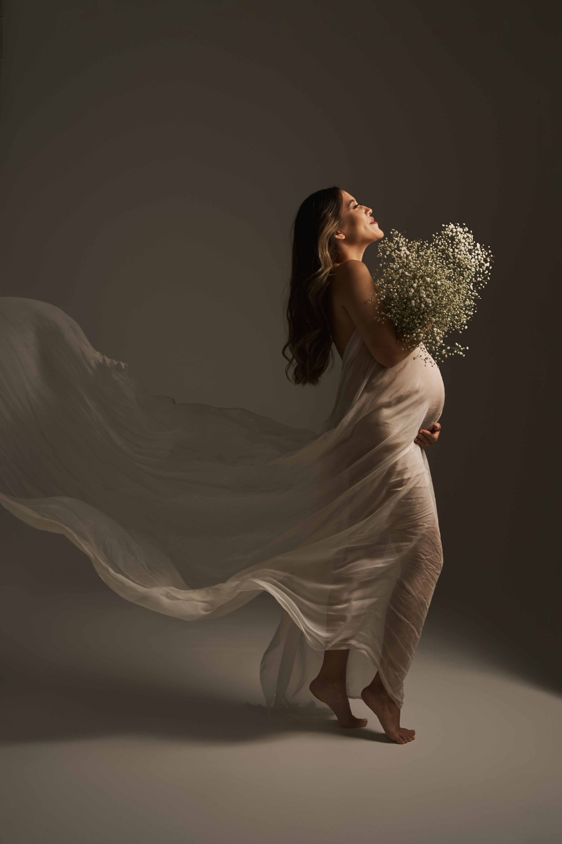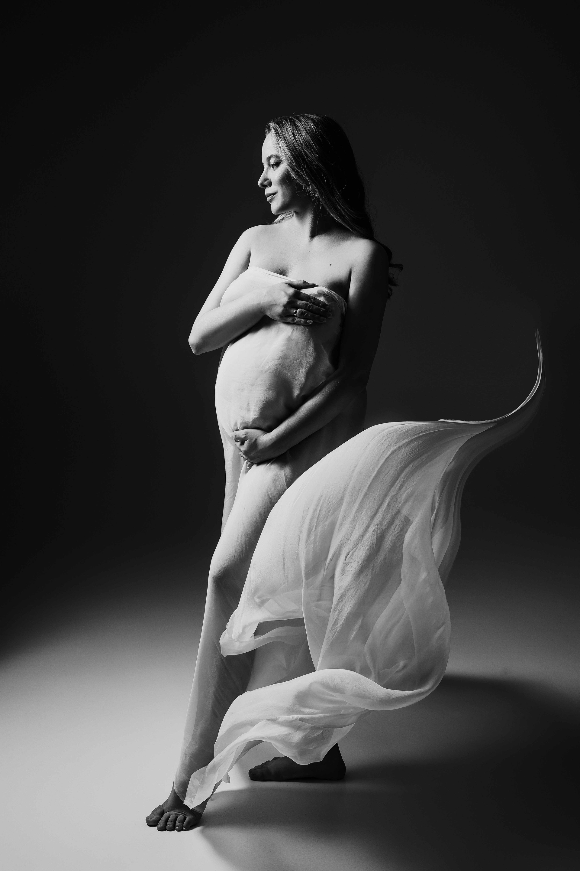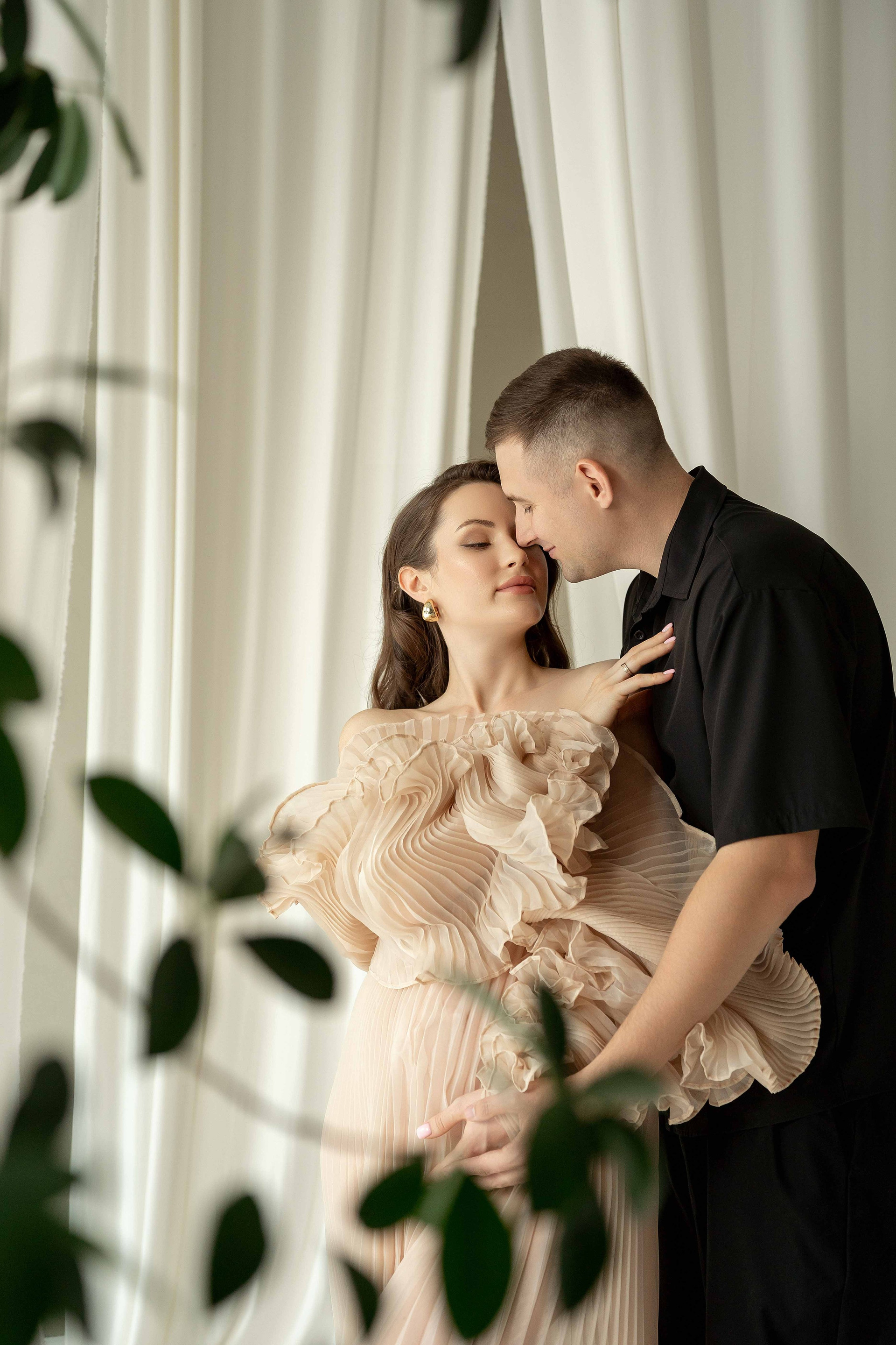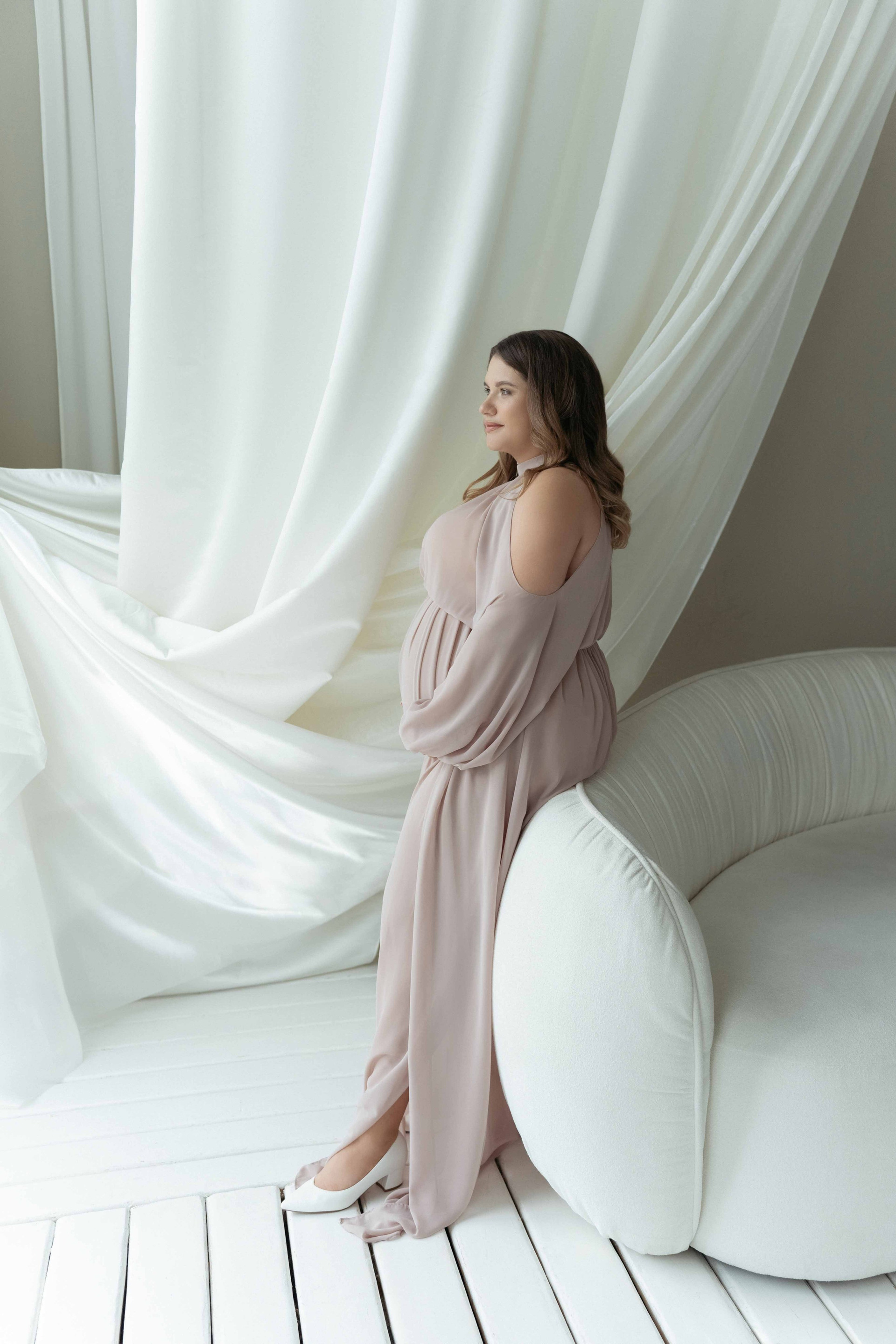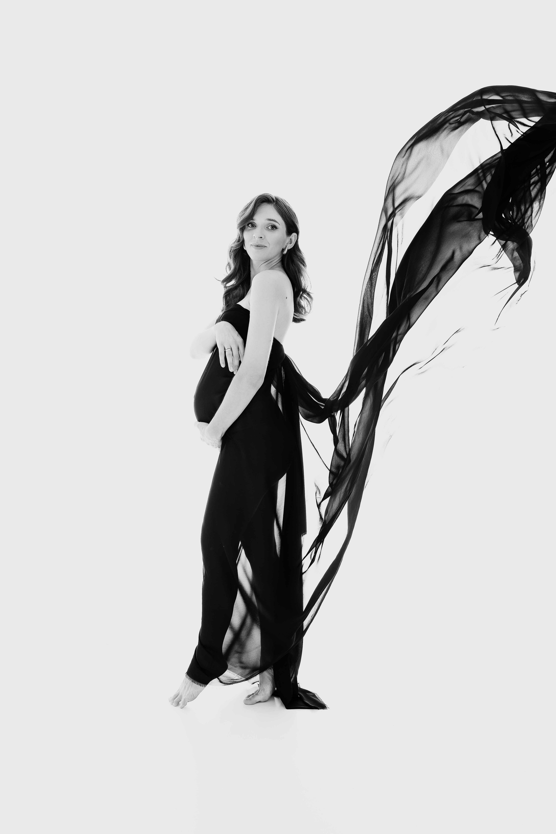 Розовая ткань мягко подчёркивает беременный животик, создавая нежный, чувственный визуал и атмосферу лёгкости в кадре. Этот образ всегда получается особенным и наполненным эмоциями.