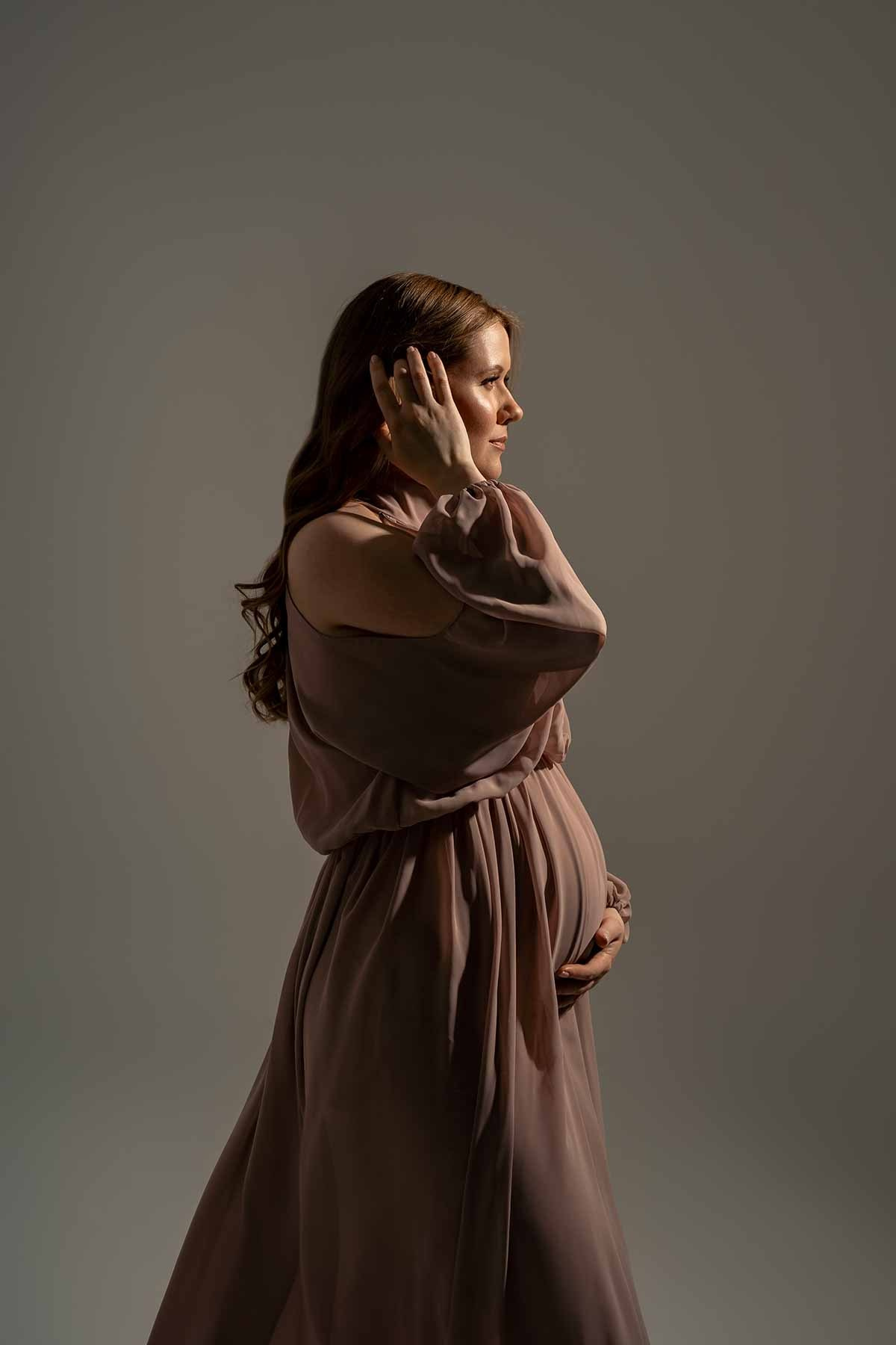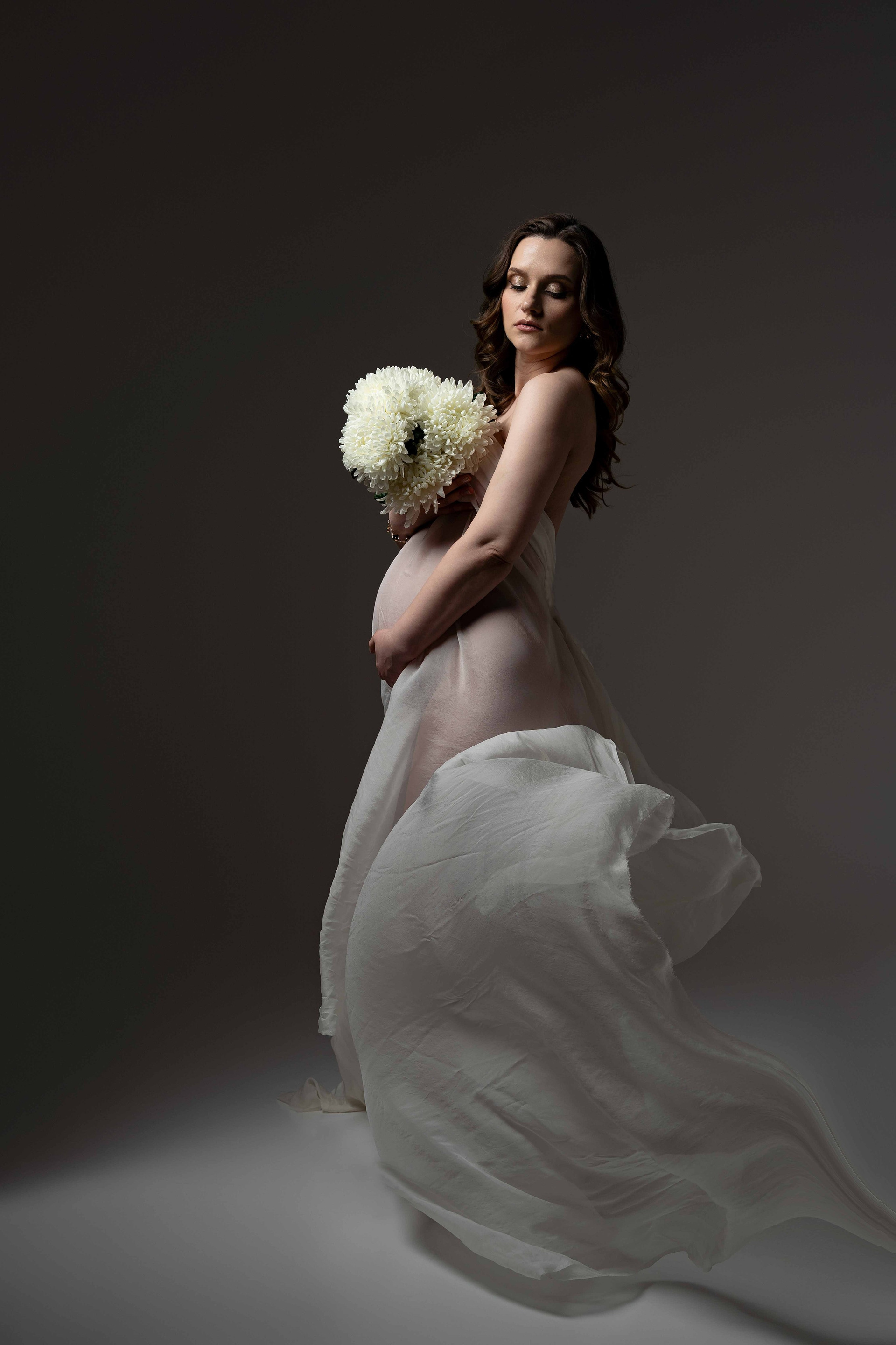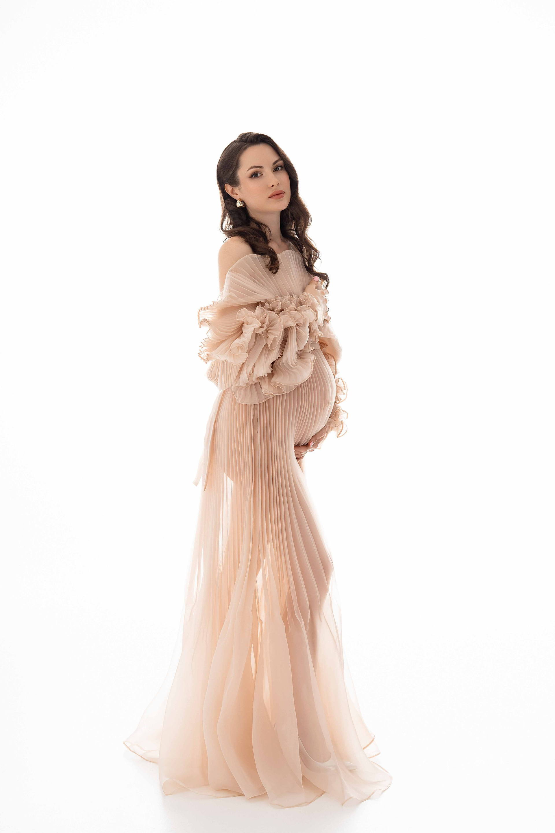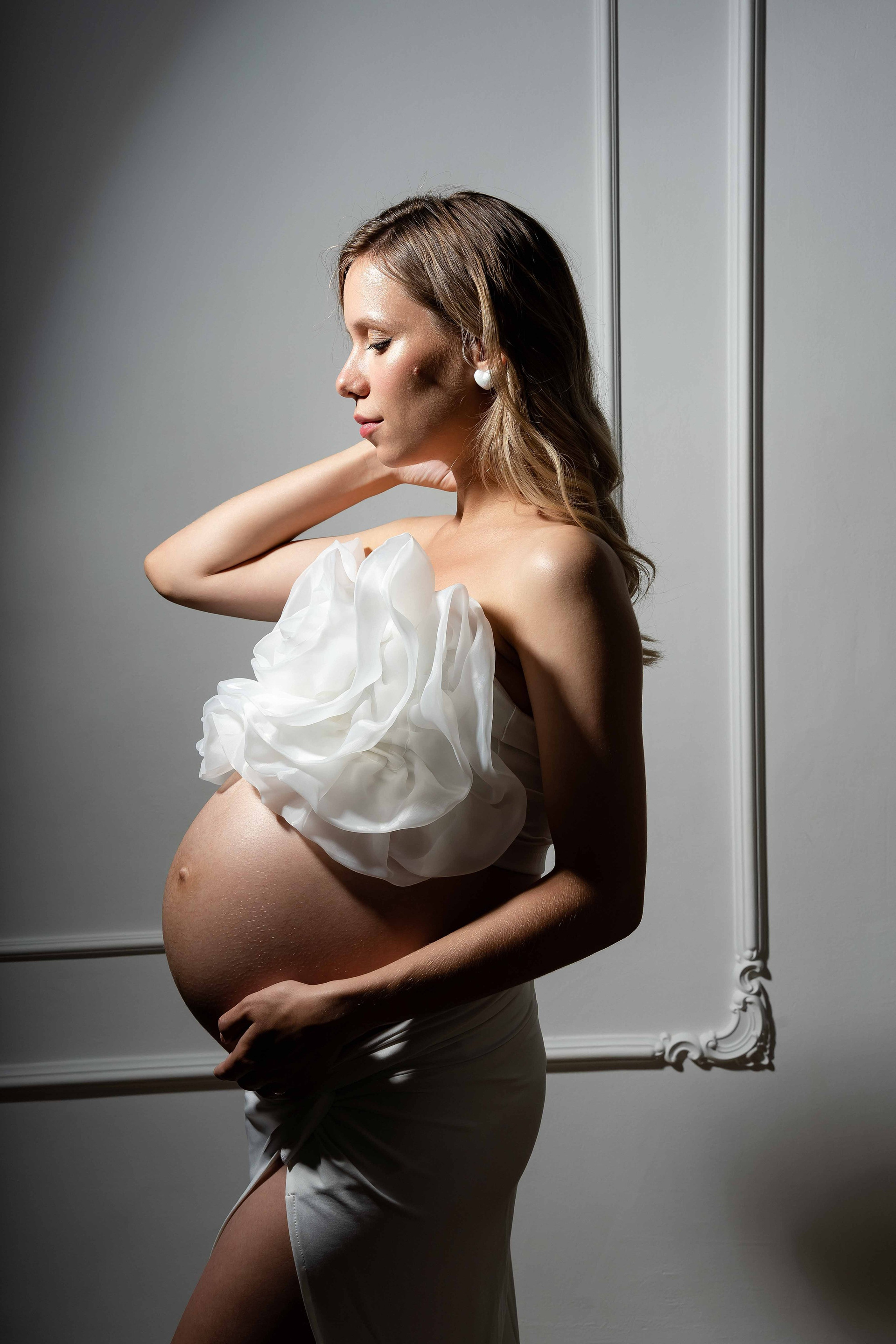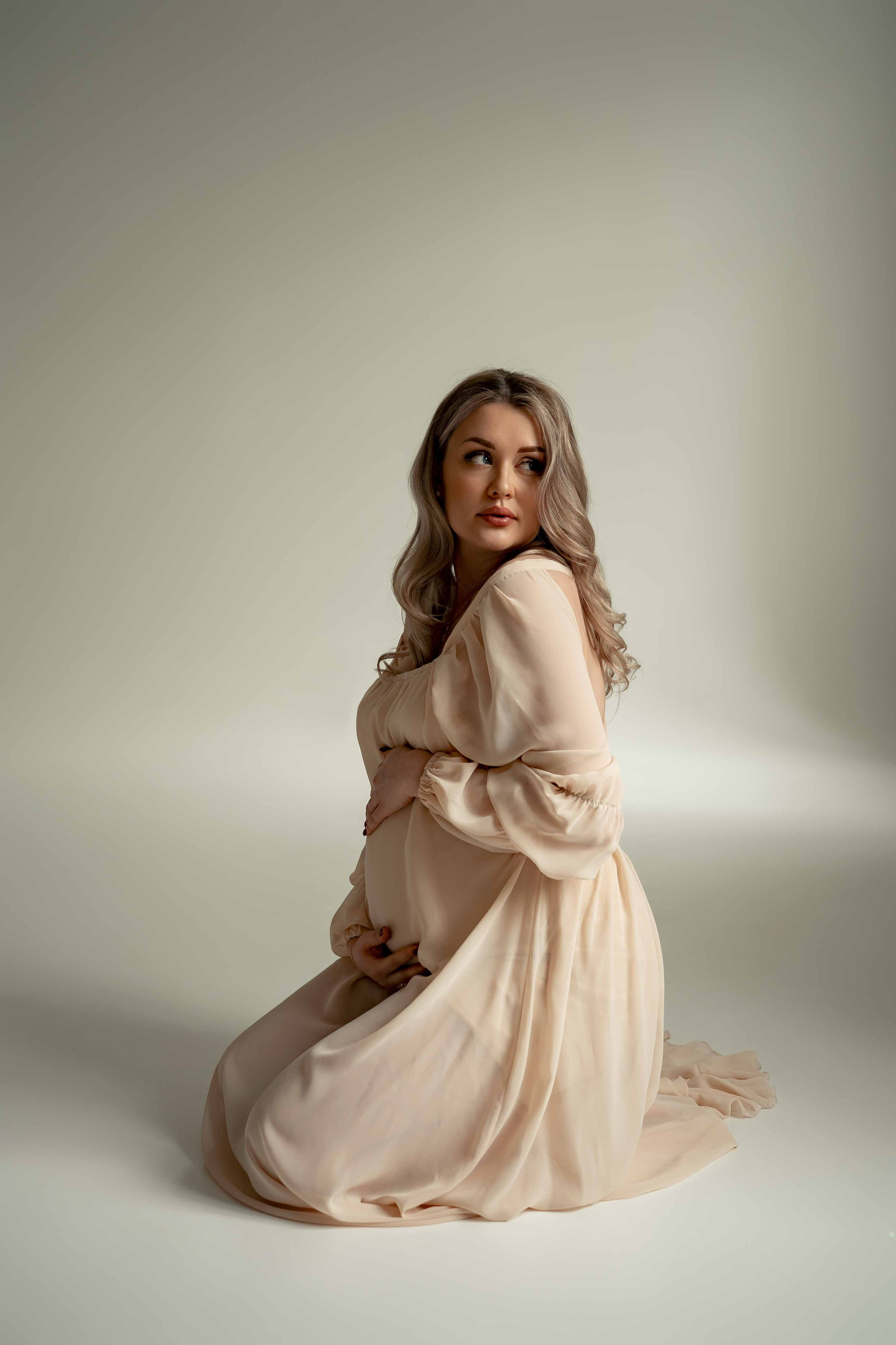 Розовая ткань мягко подчёркивает беременный животик, создавая нежный, чувственный визуал и атмосферу лёгкости в кадре. Этот образ всегда получается особенным и наполненным эмоциями.