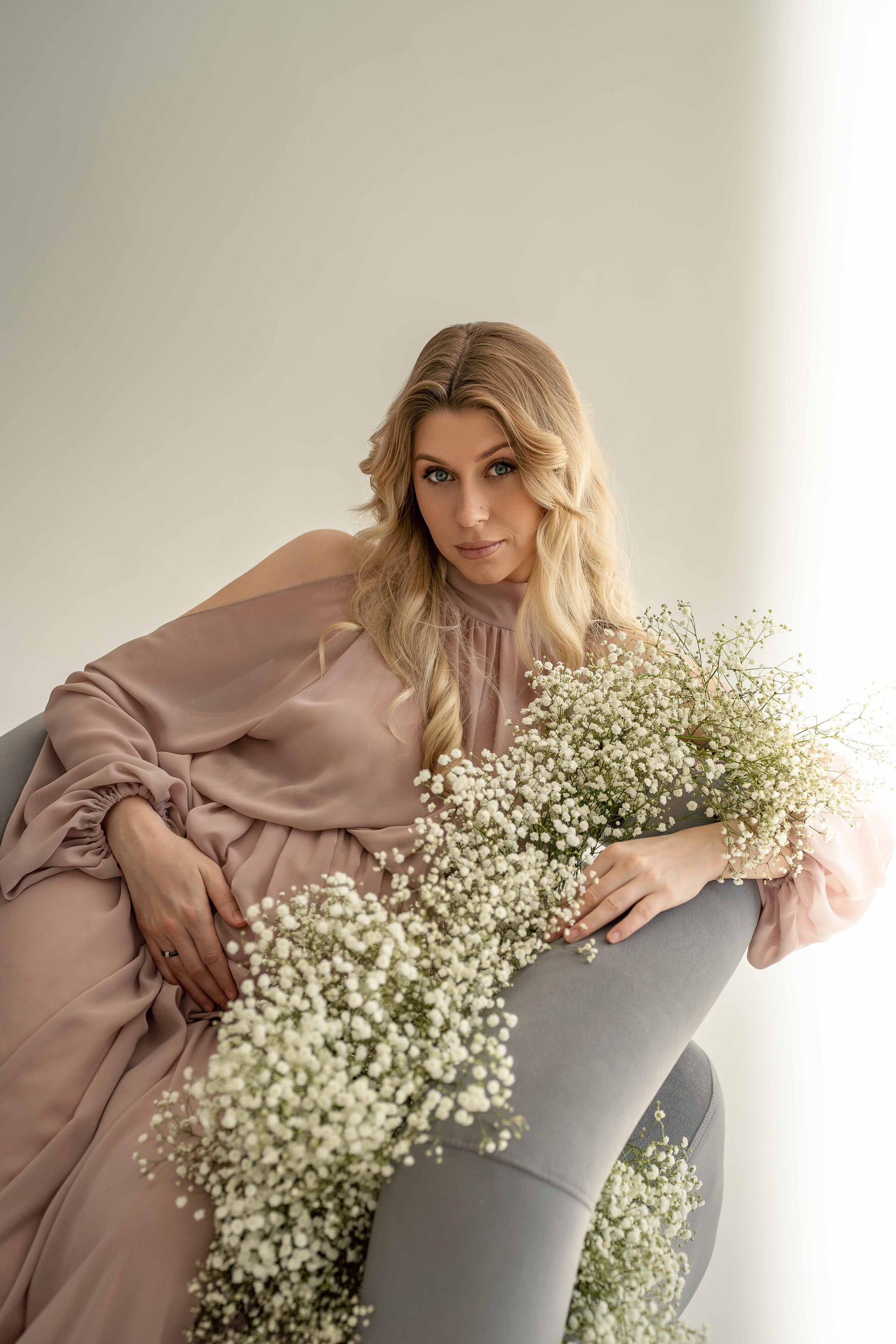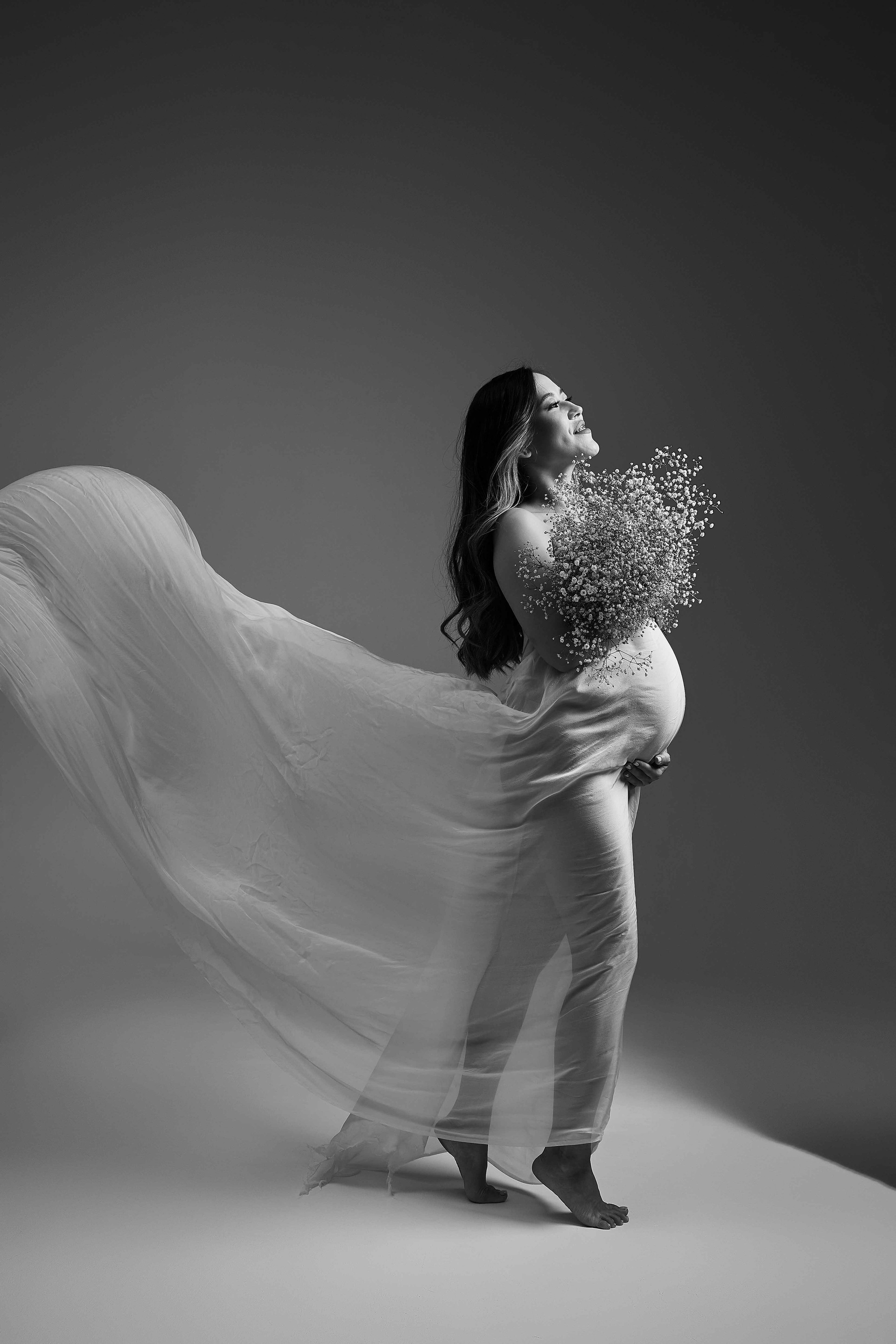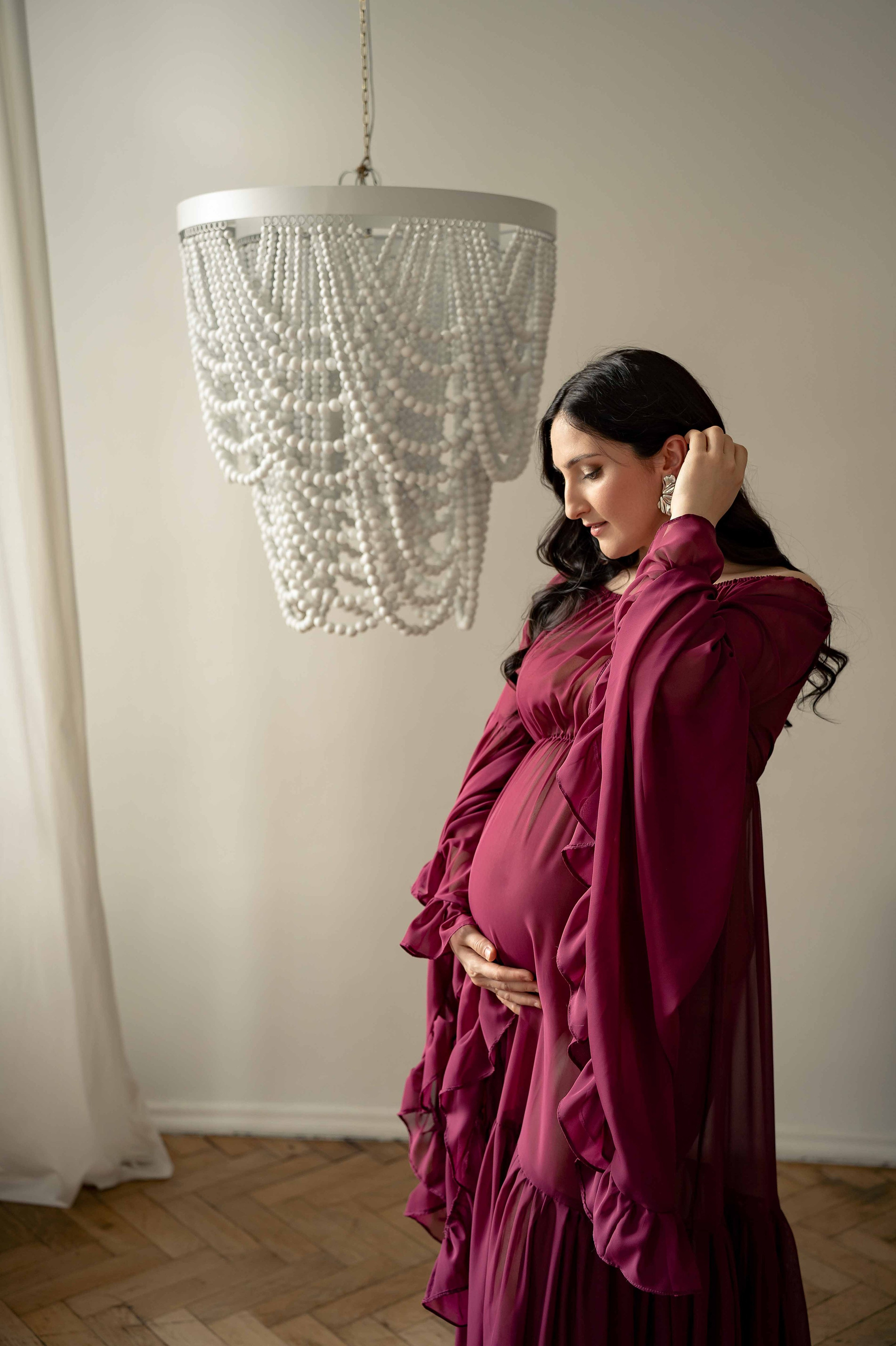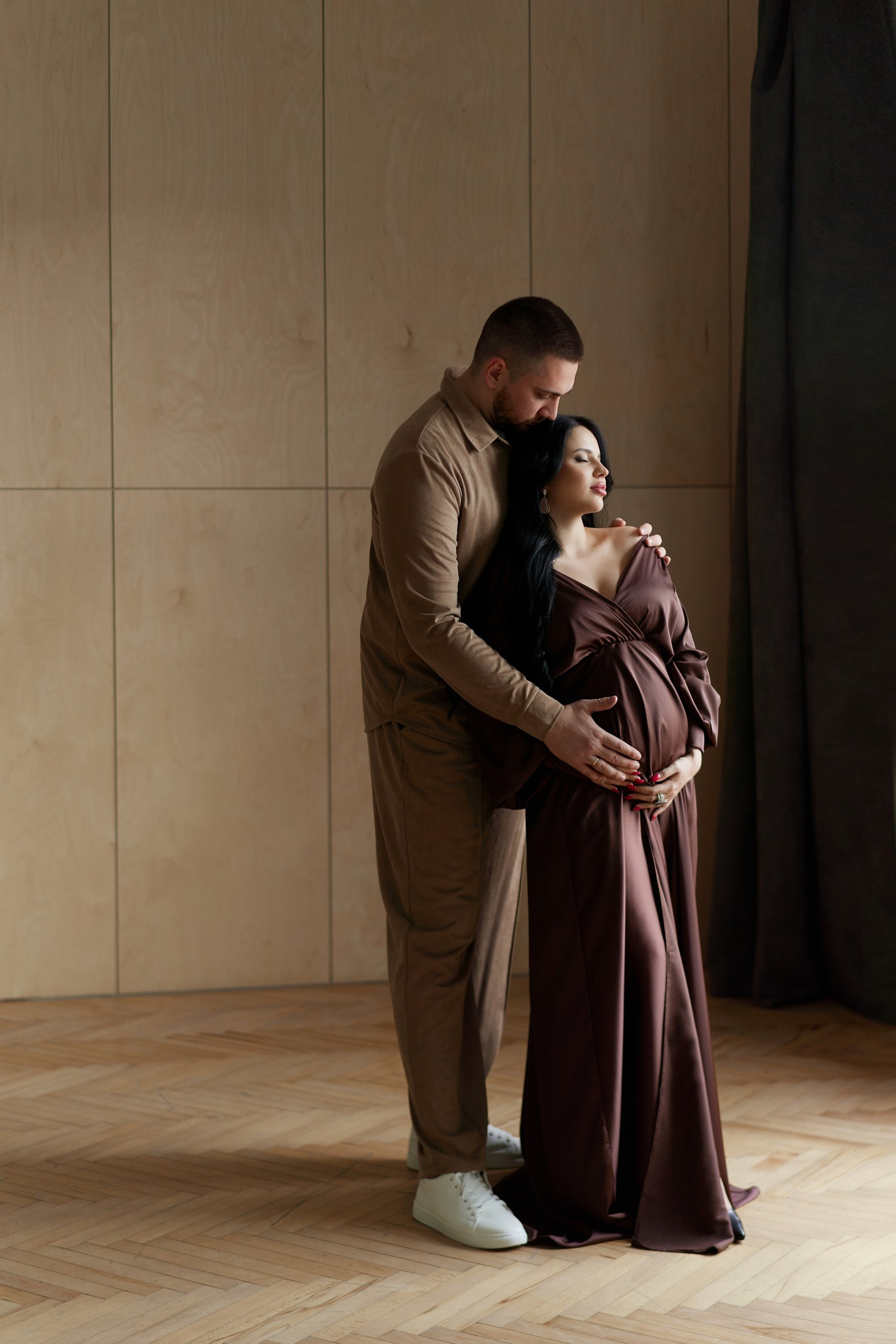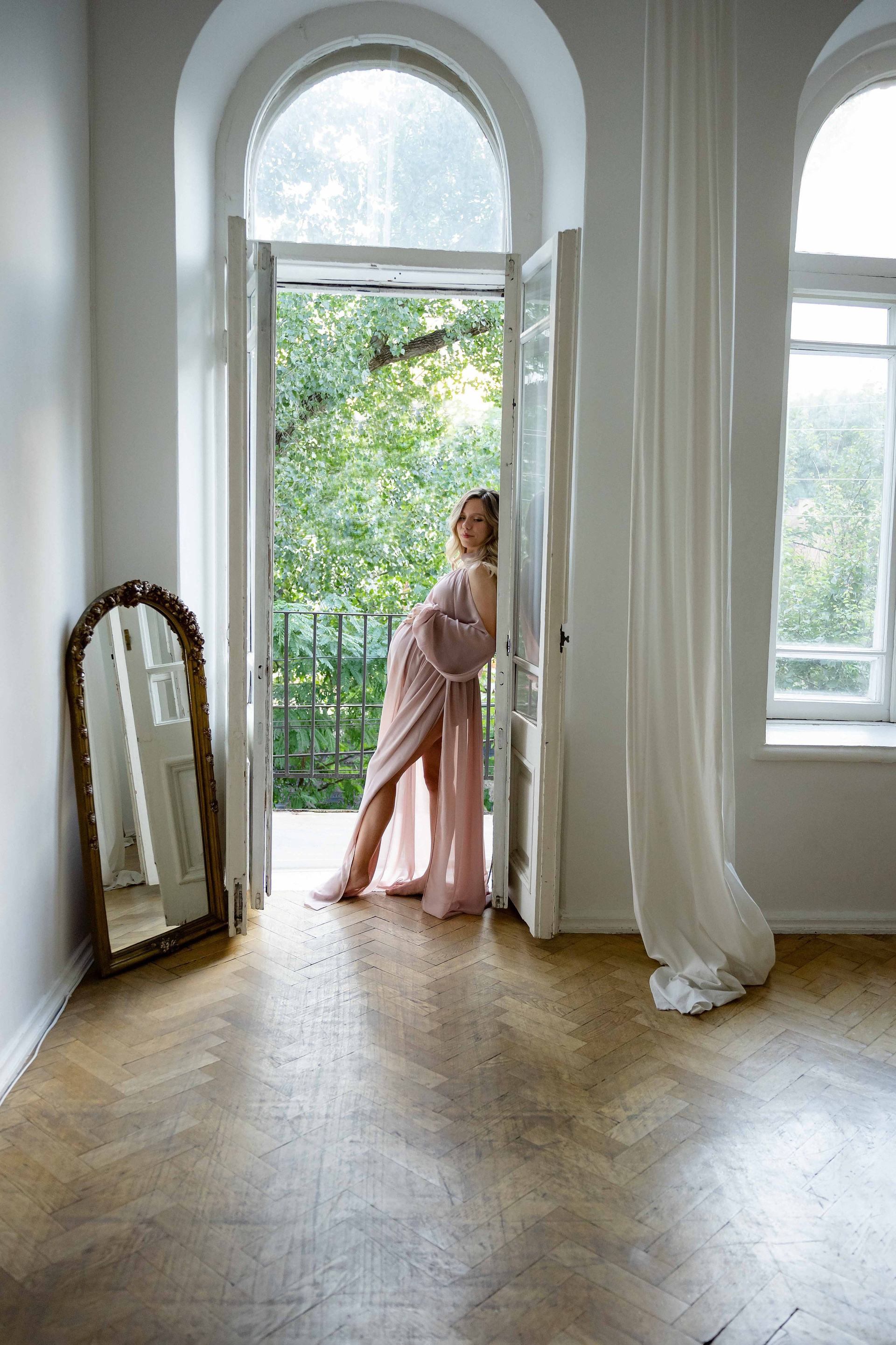 Розовая ткань мягко подчёркивает беременный животик, создавая нежный, чувственный визуал и атмосферу лёгкости в кадре. Этот образ всегда получается особенным и наполненным эмоциями.