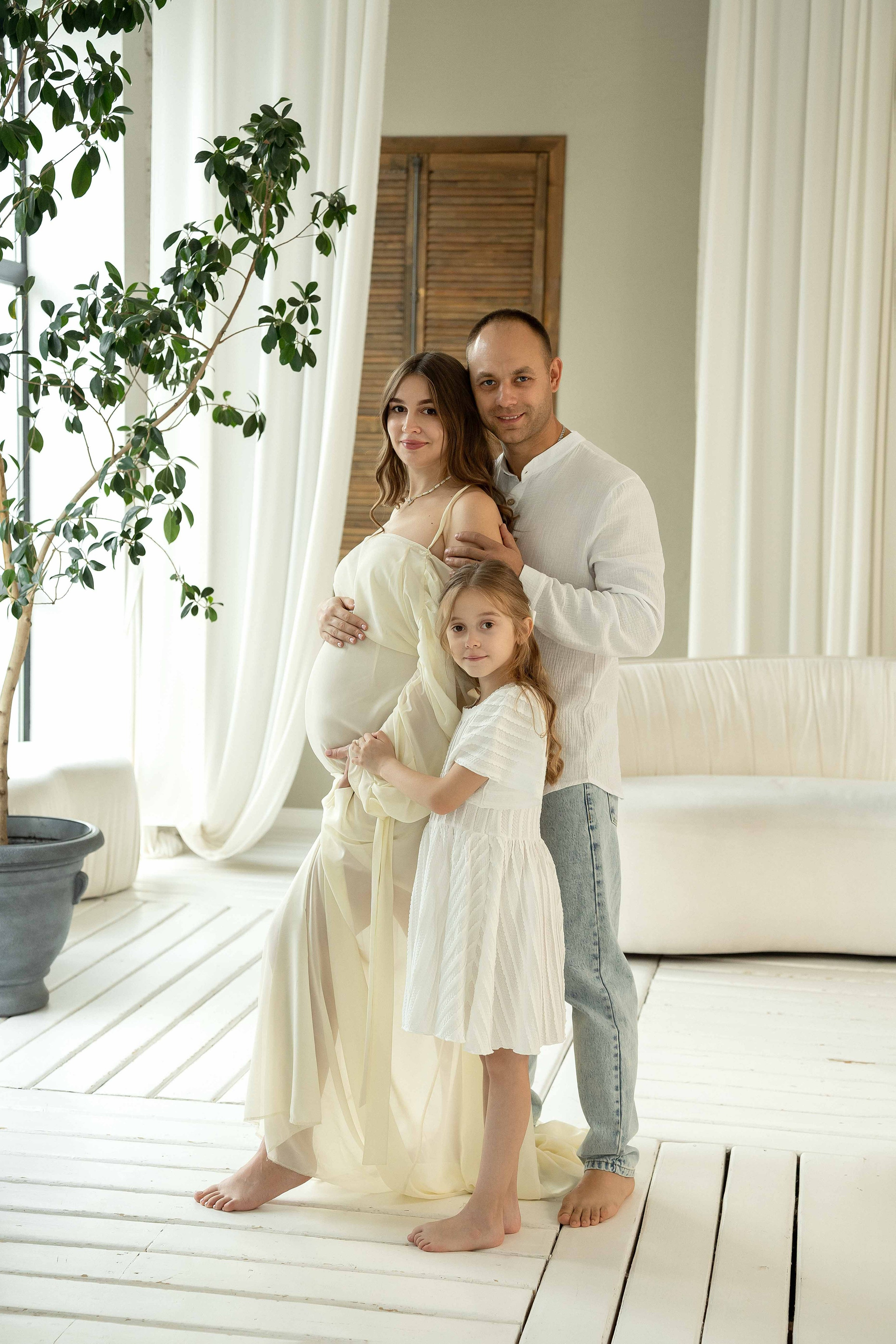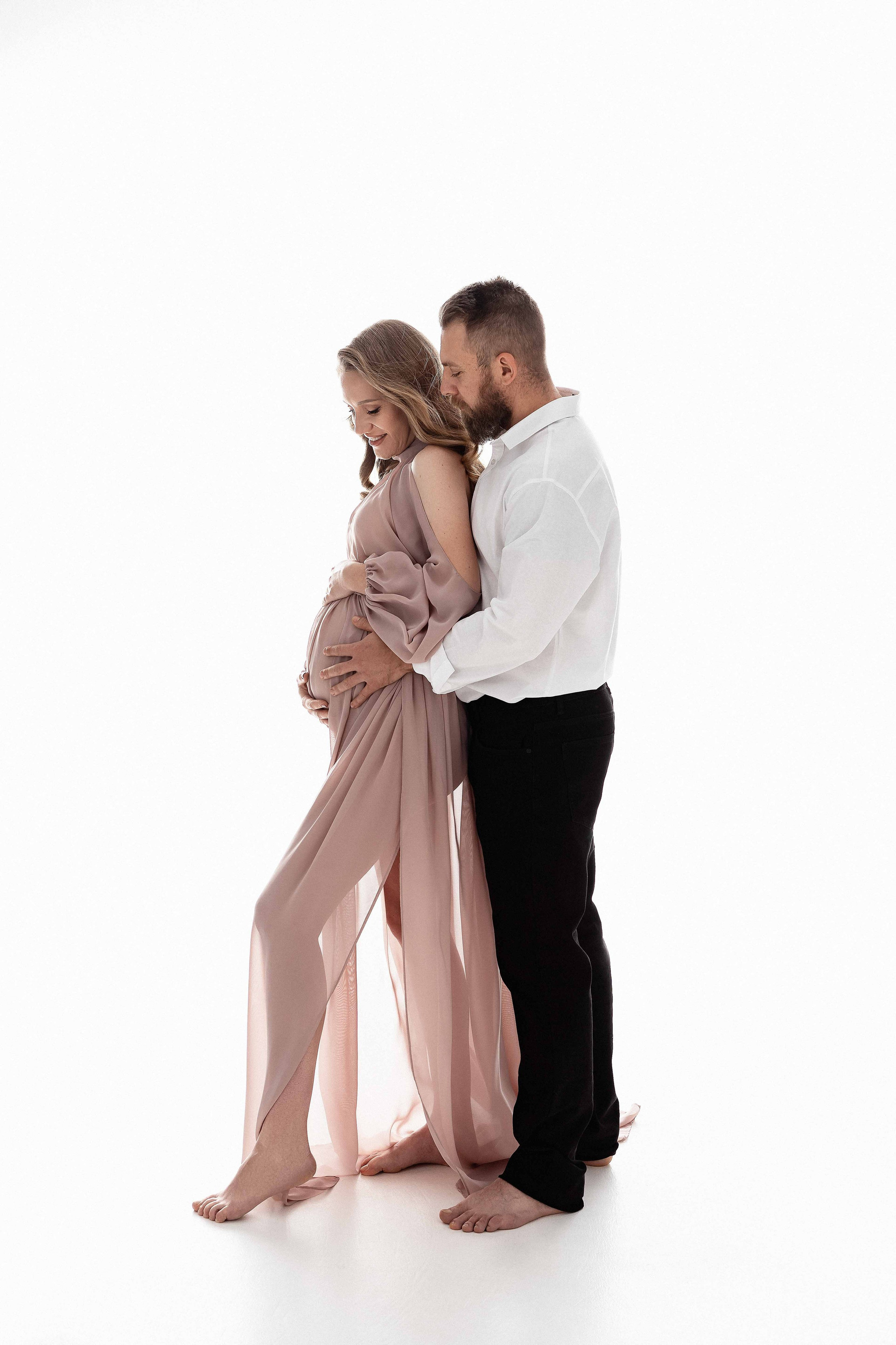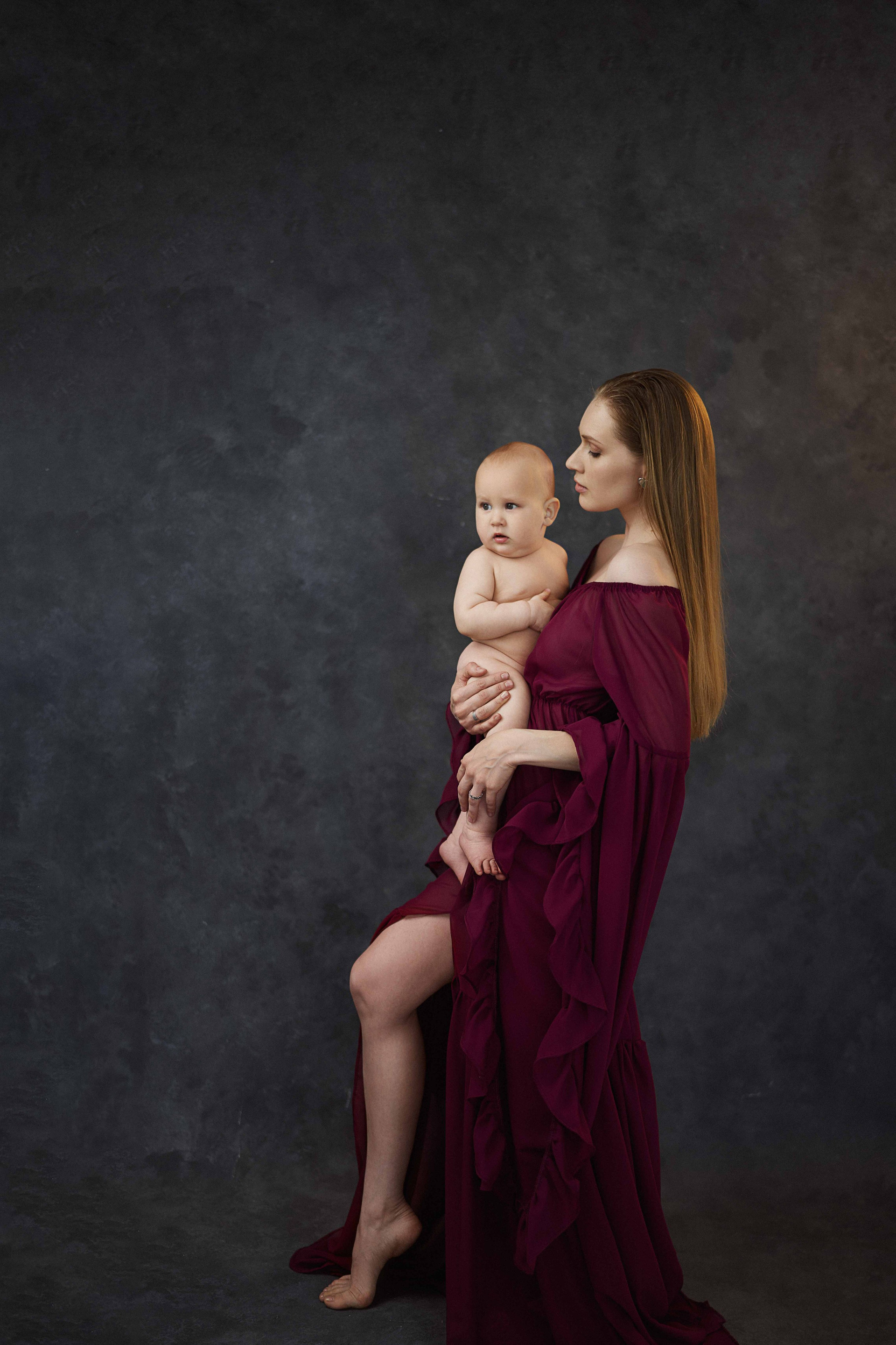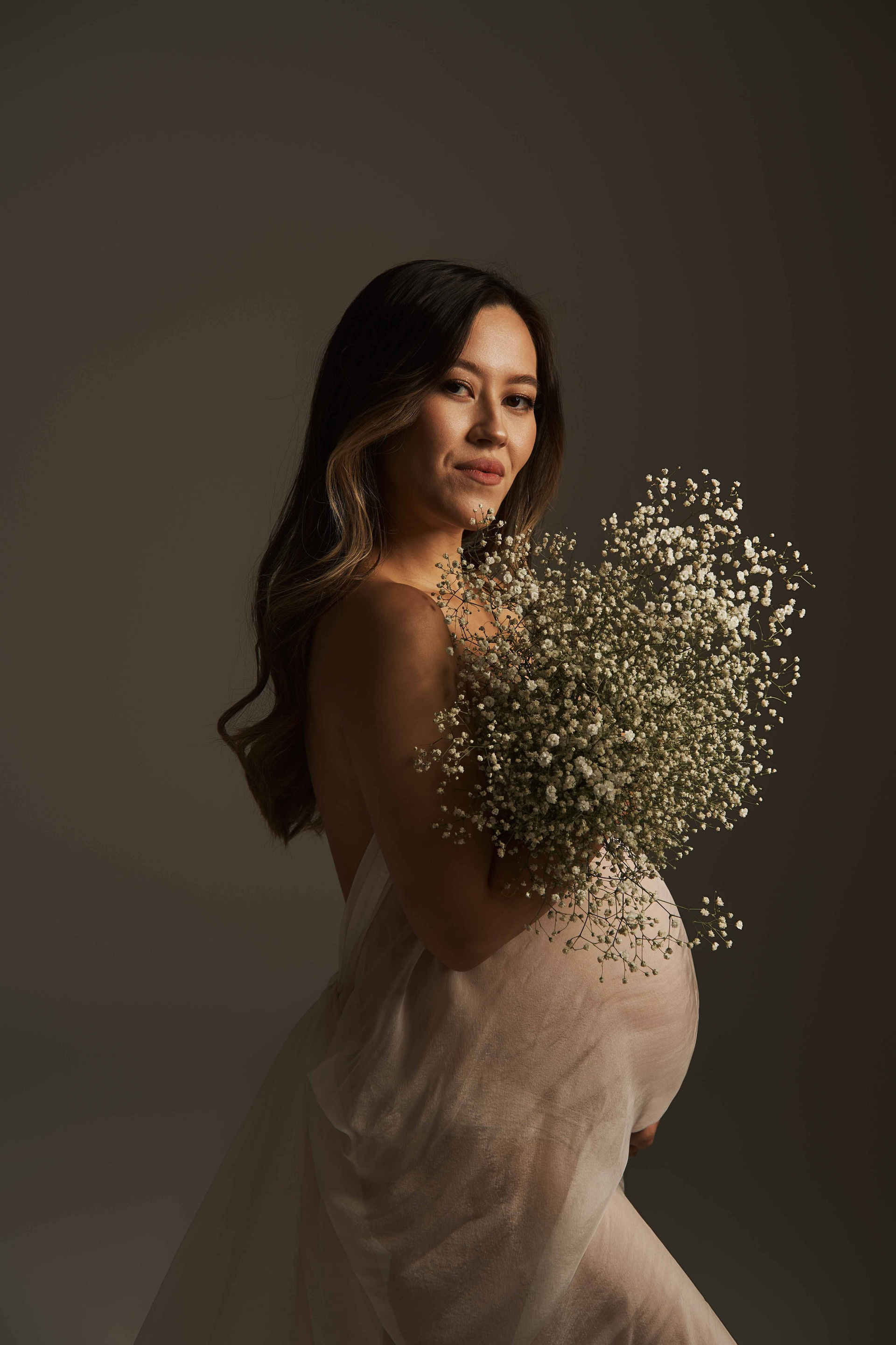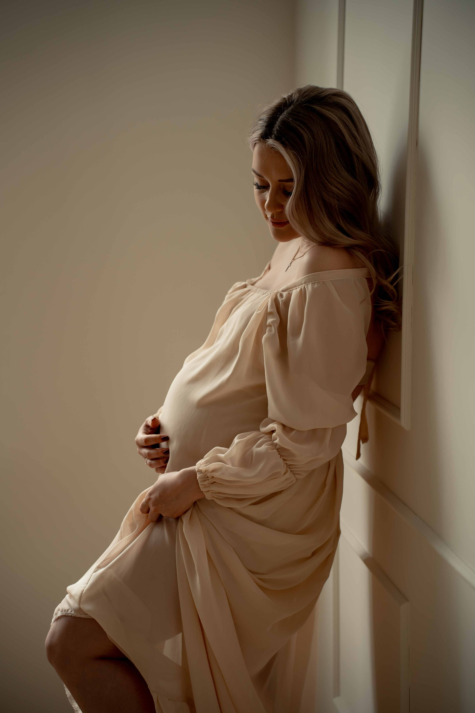 Розовая ткань мягко подчёркивает беременный животик, создавая нежный, чувственный визуал и атмосферу лёгкости в кадре. Этот образ всегда получается особенным и наполненным эмоциями.