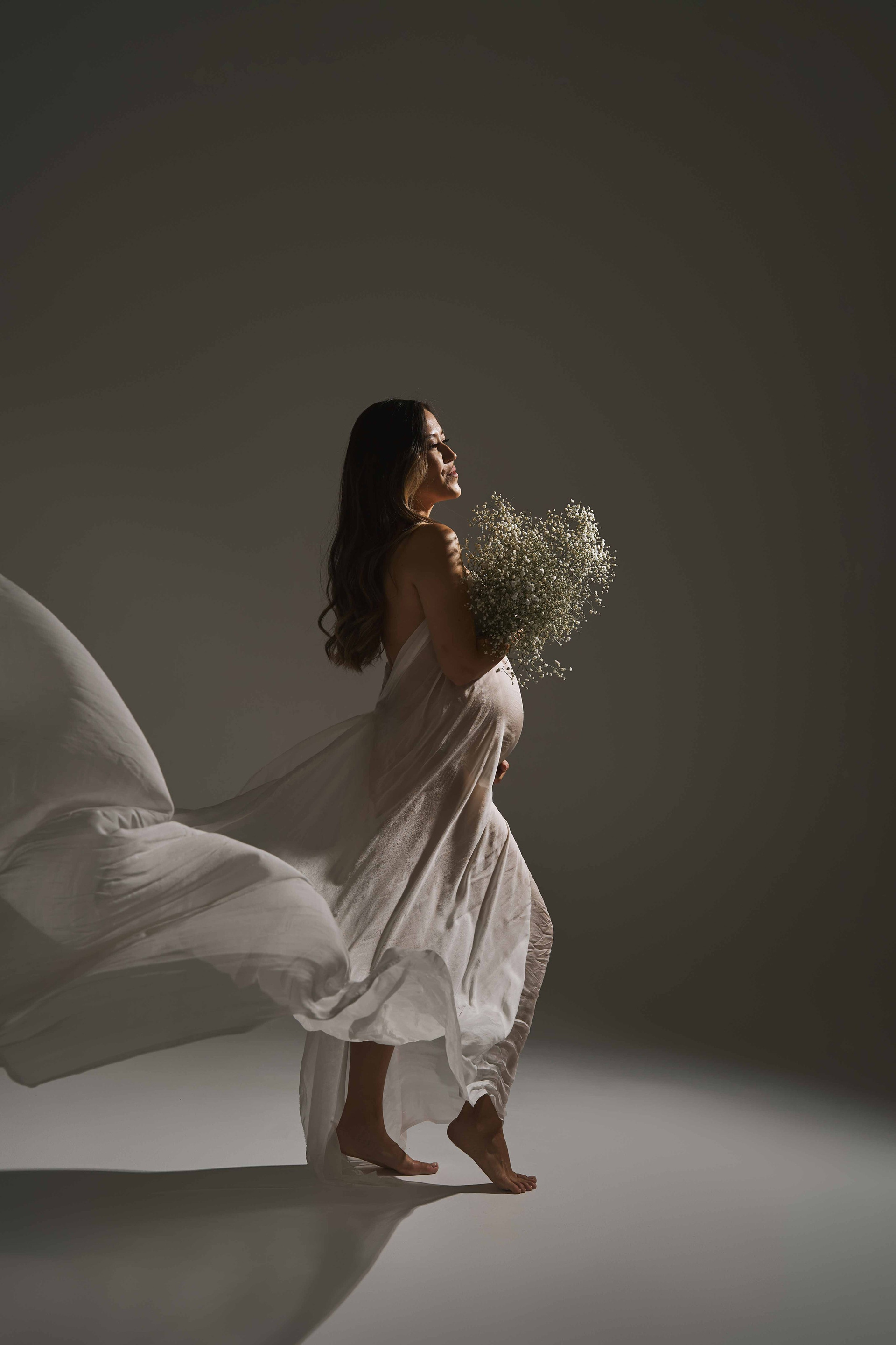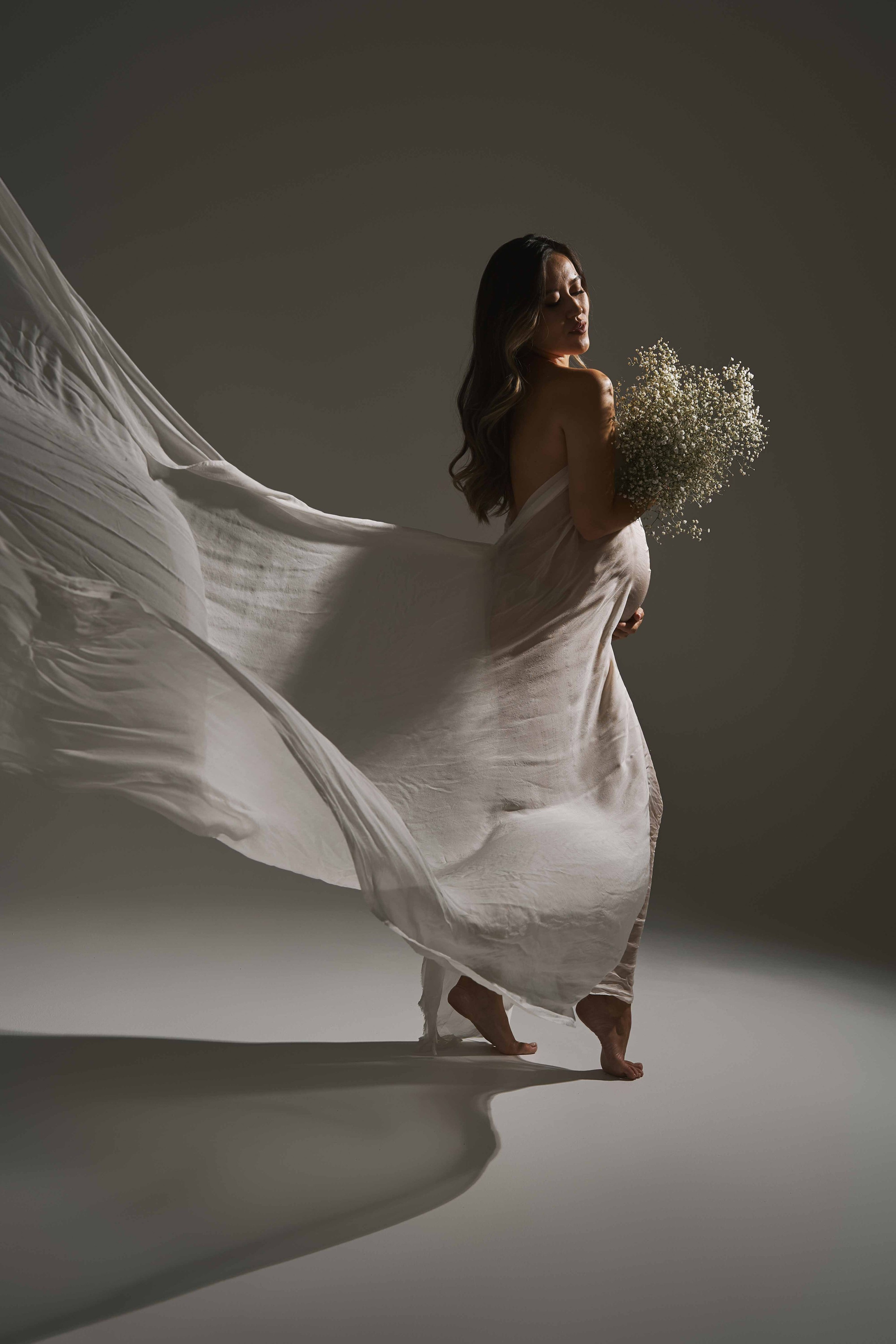 Белая шёлковая ткань создаёт ощущение лёгкости и чистоты, а в сочетании с цветами в кадре получаются по-настоящему невероятные фотографии — уникальные, неповторимые и наполненные особой атмосферой.